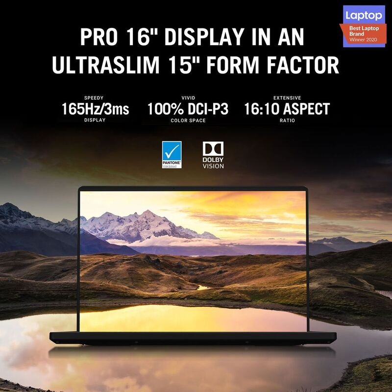 Fast, sleek, and ultraslim, the Zephyrus M16 delivers an exhilarating Windows 10 experience. Everything from pro-level content creation to competitive play is smooth with up to an 11th Gen Intel® Core™ i9-11900H CPU with liquid metal and an NVIDIA® GeForce RTX™ 3070 GPU. See it all on up to a QHD 165Hz/3ms Pantone® Validated display with 100% DCI-P3 color and Dolby Vision support, framed by the world’s first 4-sided super-narrow bezels on a gaming laptop for an expansive 94% screen-to-body ratio. Sink into surround sound with six Dolby Atmos® speakers and dual force-canceling woofers that enrich every kind of entertainment.