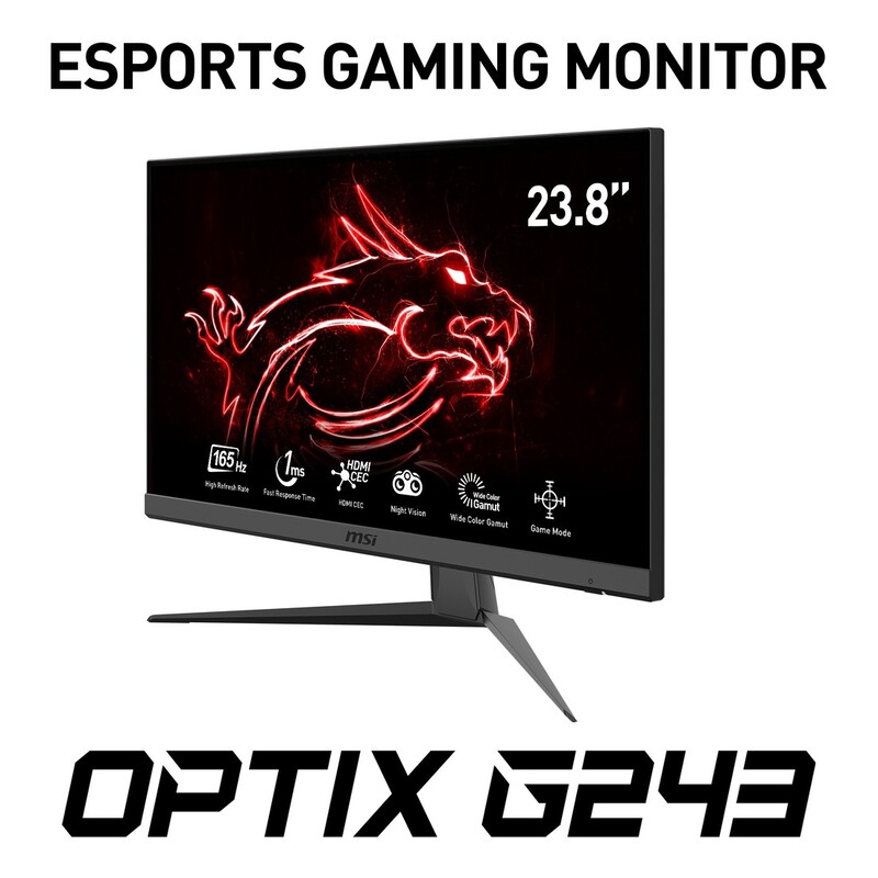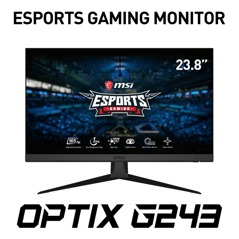 Visualize your victory with MSI Optix G243 esports gaming monitor. Equipped with a 165hz Refresh rate, 1ms response time VA panel, Optix G243 will give you the competitive edge you need to take down your opponents. Built with FreeSync technology, the Optix G243 can match the display's refresh rate with your GPU for ultra-smooth gameplay. Reach the peak of immersion with the latest technologies built into MSI Gaming monitors.