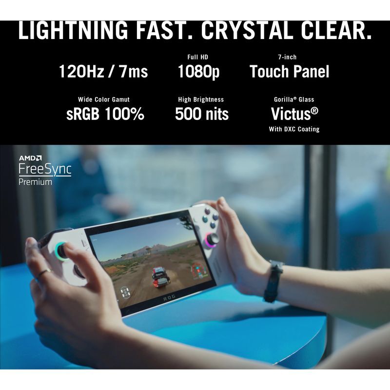 A high-powered machine needs a top-spec display to match, and the Ally has specifications that just a few years ago would have rivaled gaming laptops many times its size. Sporting a 1080p touchscreen panel with a 120Hz refresh rate and FreeSync™ Premium support, this 7-inch display is truly a joy to game on. With 100% coverage of the sRGB color space, you can trust that all of your content looks exactly as the game makers intended.