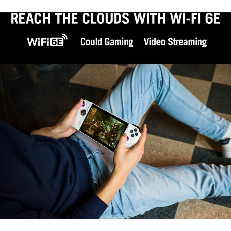 The Ally was built to travel, so it comes equipped with ultra-fast Wi-Fi 6E networking. Wi-Fi 6E supports 4X more network capacity and 75% lower latency than Wi-Fi 6, letting the Ally stream videos, access cloud gaming services, and download games effortlessly even on crowded networks.