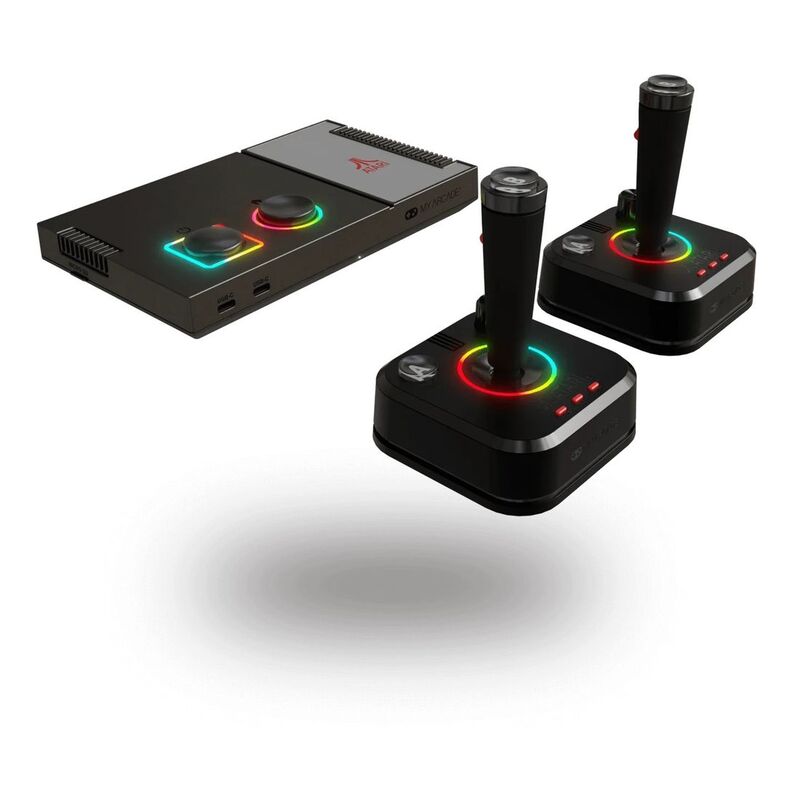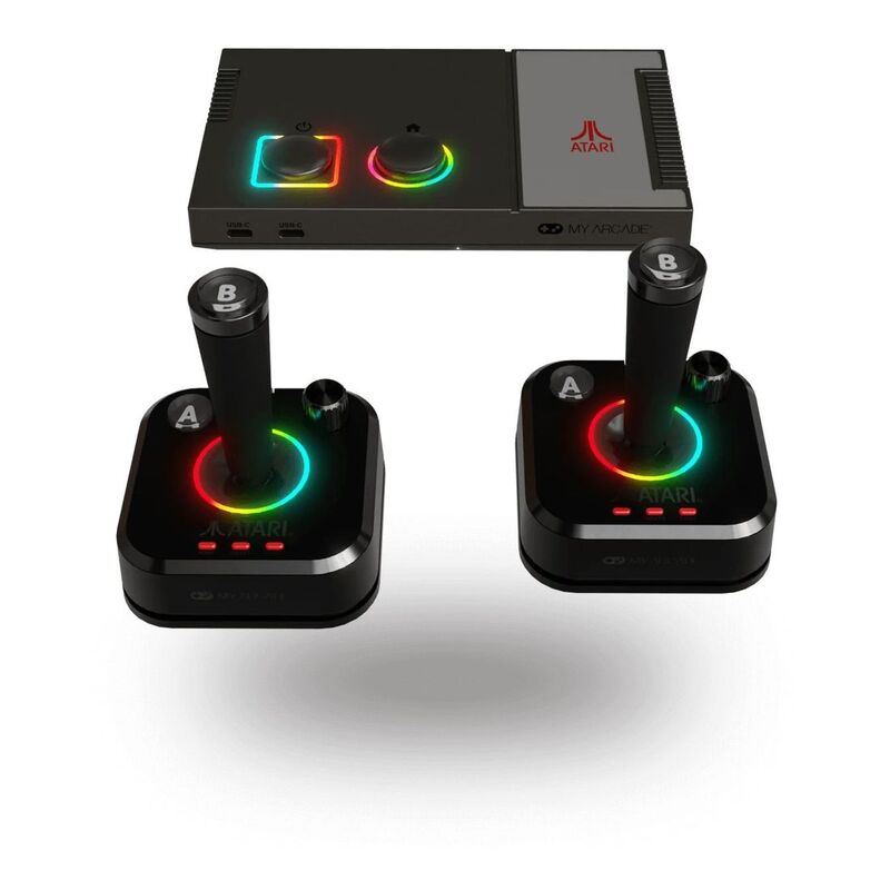 • Two 2.4 GHz wireless joysticks, inspired by the original Atari joysticks, include built-in paddles for games like Breakout®, Warlords® and many more.