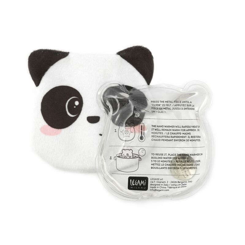 Stay warm in colder months with the Legami SOS Winter Hand Warmer - Panda. Giving an instant sensation of heat when activated, press the metal plate and wait for it to heat up, after which it will stay warm for about 30 minutes. To reuse, remove its outer cover, wrap it in a cloth and place in a pan of boiling water for 5 -10 minutes, until the contents of the hand warmer turn into liquid. Hug me close!