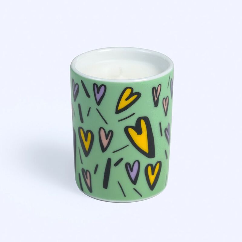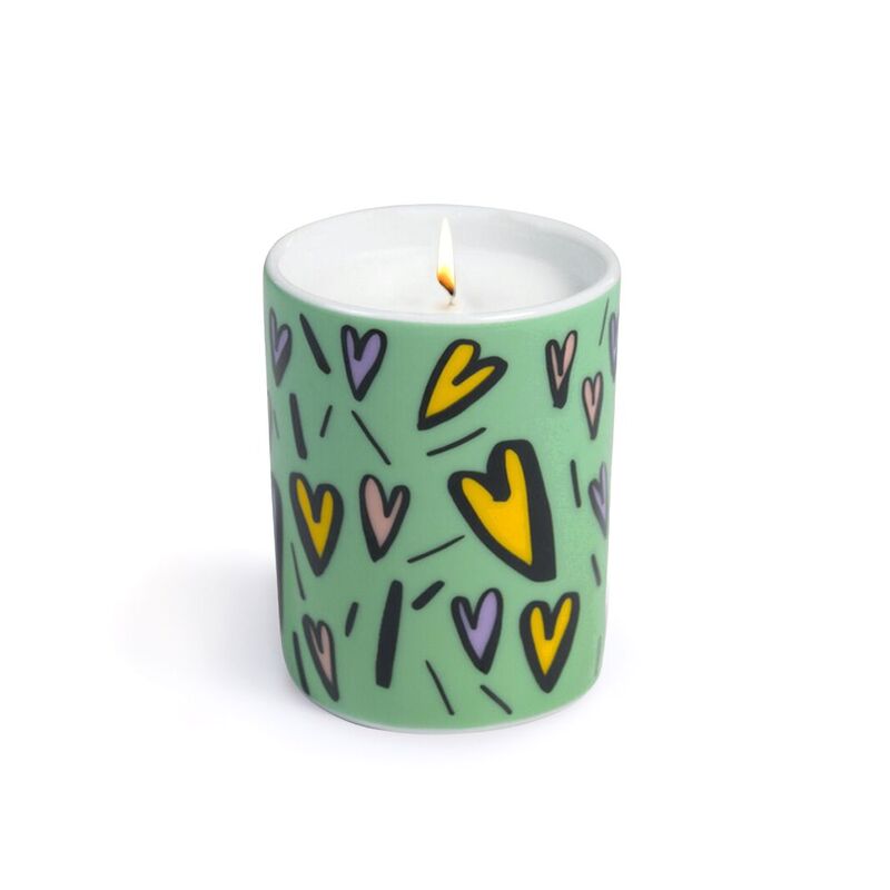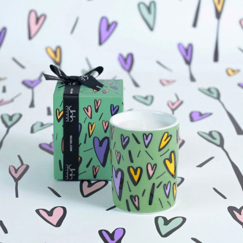 This scented candle opens with sparkling notes of passionfruit, grapefruit and tangerine before revealing a floral heart of jasmine and white musk. Created in collaboration with Jordanian artist and illustrator Dina Fawakhiri, the blend is presented in a colorful porcelain vessel brought to life with a joyful heart pattern in Dina’s signature animated aesthetic. Hand-poured in Dubai using 100% natural wax and the finest oils, it features one pure cotton wick to ensure even burn and a stronger scent reach. Beautifully presented in a signature Silsal box, the candle makes a thoughtful gift for any occasion.