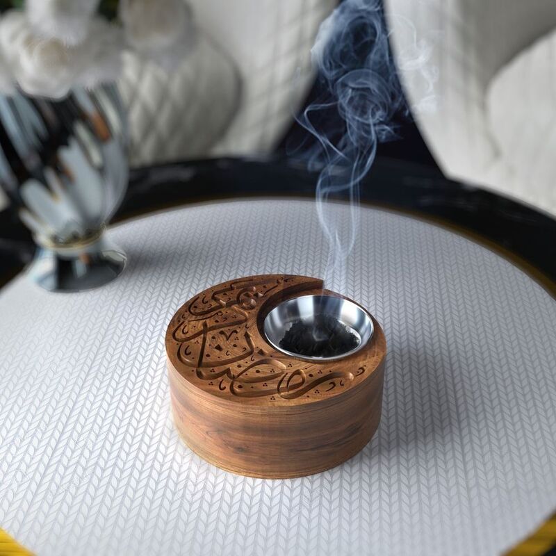 HilalFul Ramadan Wooden Crescent Incense Burner