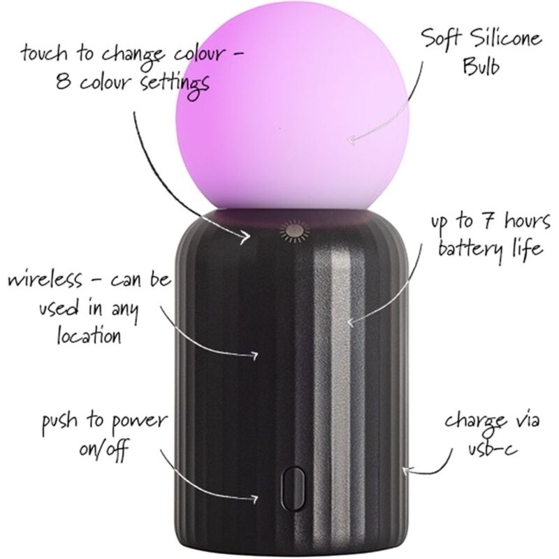 - Kids-safe soft touch bulb & silicone non-slip base