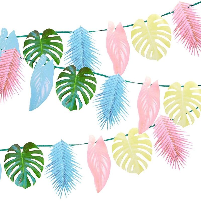 Pastel Tropical Palm Leaf Paper Garland by Talking Tables. This party decoration features 12 palm leaves in pretty pastel colours. This garland is double-sided, simply hang on the wall, in the garden or across the ceiling to create a tropical atmosphere that your guests will love! Perfect for a tropical themed birthday party, fiesta or summer garden party. Pair with the rest of our 'Tropical Palm' themed tableware and decorations to complete the look. Size: 2.6m (8.5ft) in length with 12 card pennants.