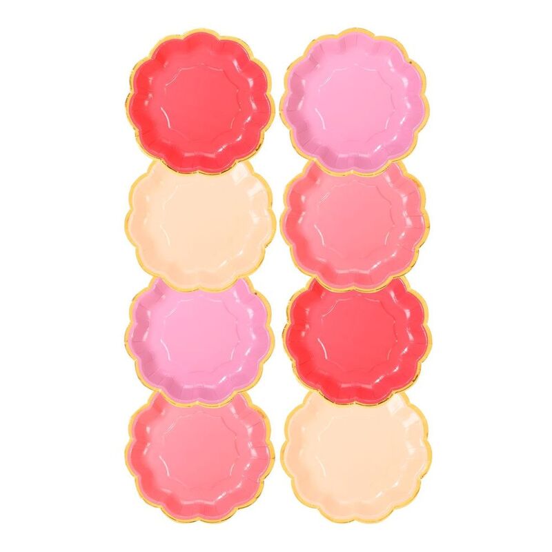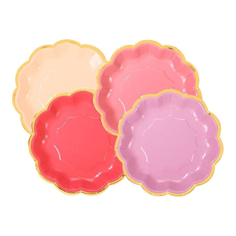 Each pack comes with 12 plates, four of each beautiful shade of pink with a gold foil trim and scalloped edges.