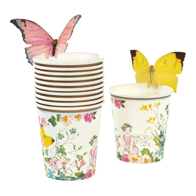 These cups look great with our Truly Fairy paper plates and napkins, to create a magical fairytale setting. Each pack contains 12 paper cups with butterflies in 2 different designs. This product now has plastic free packaging.