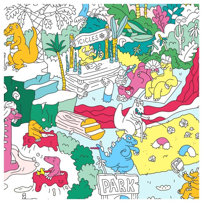 Dinos Large Coloring Poster from OMY Go on an adventure in the crazy world of dinosaurs! This large poster with humorous illustrations is a real artistic space for children with their overflowing imagination.
