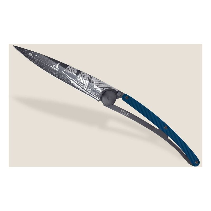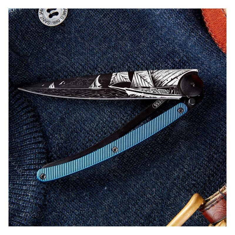 Deejo 37G Blue Aluminum Pocket Knife - Sailing Blue