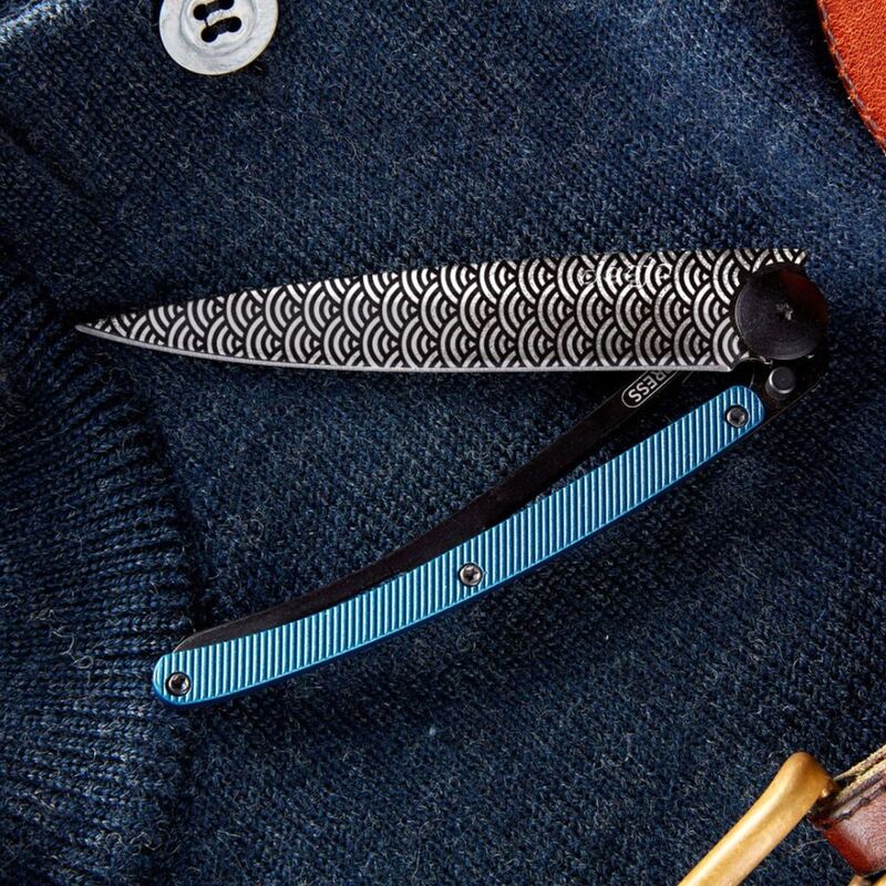 Deejo 37G Pocket Knife - Blue Aluminium/Clouds (Black)