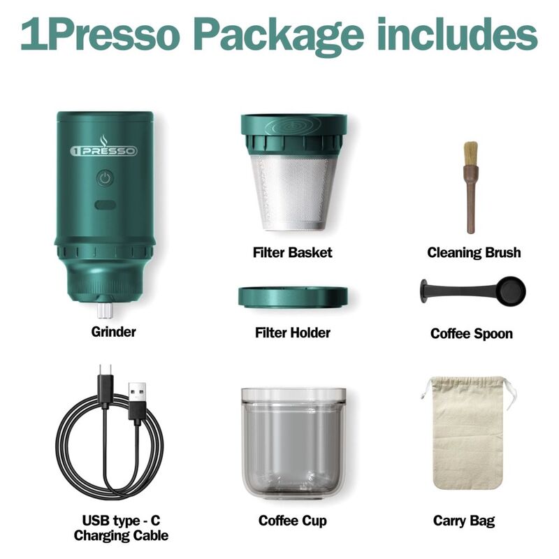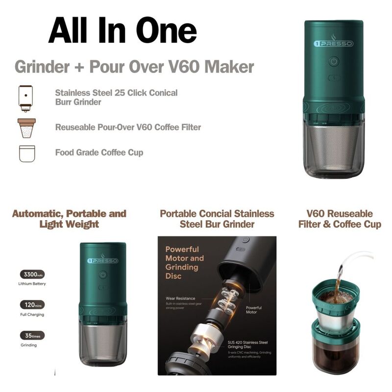 1Presso Portable Electric Grinder And V60 Machine Teal Green