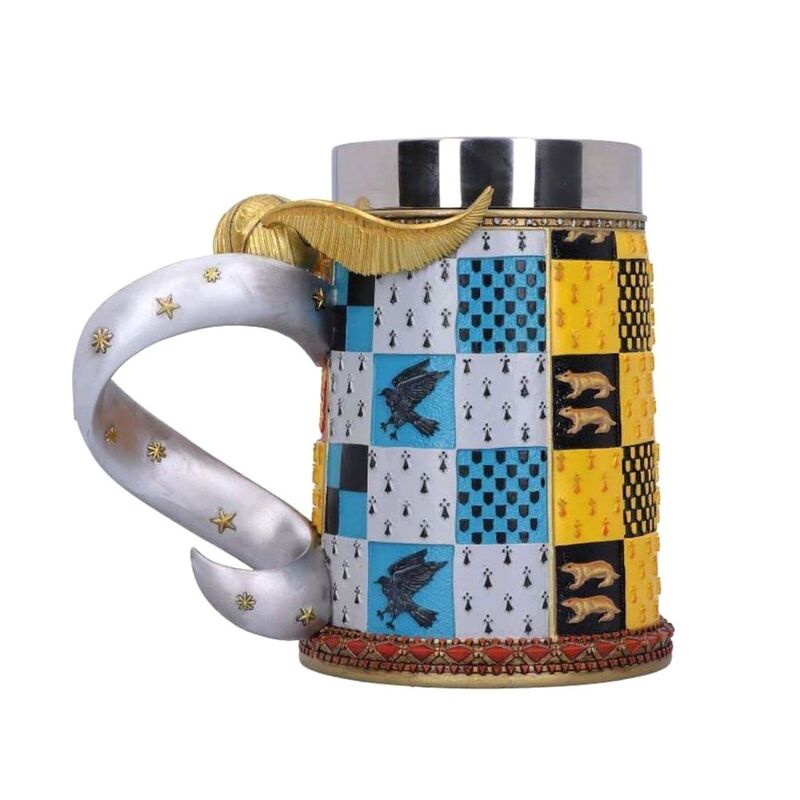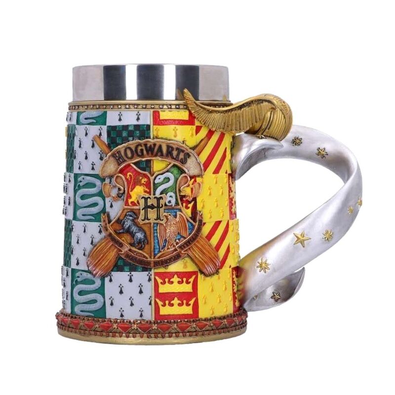 Show your love for Quidditch with this beautifully crafted Golden Snitch collectable Tankard. The Golden Snitch, often simply called the Snitch, is the third and smallest ball used in Quidditch. It is a walnut-sized gold-coloured sphere with silver wings. It flies around the Quidditch field at high speeds, sometimes pausing and hovering in place. The Seeker's goal is to catch the Snitch before the other team's seeker, which is worth one-hundred and fifty points. The game can only end when the Snitch has been caught! The Snitch forms an elegant handle on this beautifully crafted Tankard, while the Hogwarts crest is proudly emblazoned on the front.