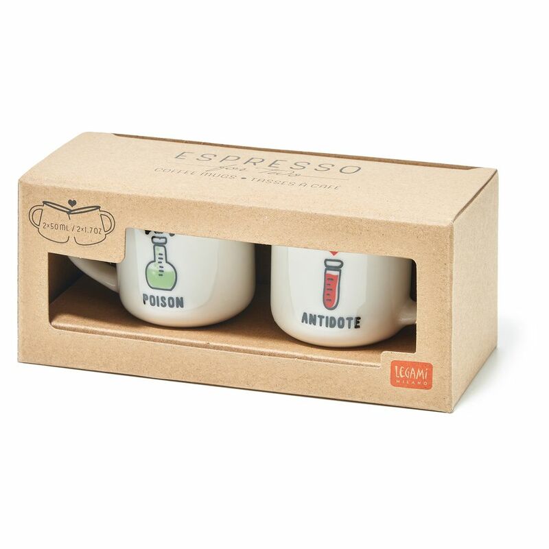 Legami Espresso for Two - Porelain Coffee Mugs 50 ml - Poison & Antidote (Set of 2)