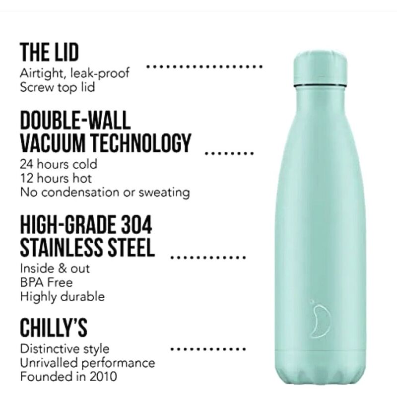 Chilly's Water Bottles are all finished with an advanced powder coating, offering a hardwiring, quality finish.