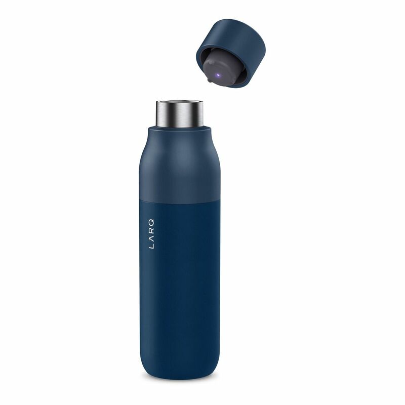 The LARQ Bottle PureVis is the world's first self-cleaning water bottle and water purification system. It uses UV-C LED light to eliminate up to 99.9999% of bio-contaminants from your water and bottle.