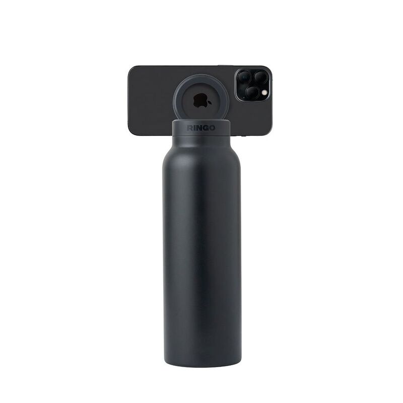 RINGO insulated water bottle is the hydration bottle for modern lifestyle that magnetically holds your phone. Taking advantage of MagSafe technology, RINGO cleverly transformed the bottle lid holder into a magnetic mount. With a 90-degree hinge and adjustable positioning for both portrait and landscape use, with or without water, Ringo™ ensures that your device is always at the perfect angle for that selfie, zoom call, or timer'ed group photo. Plus, the package comes with Magnetic Booster Ring that makes Ringo™ compatible with any device - including older iPhones, non-Apple phones, and even tablets like the iPad 12.9"! And of course, RINGO is designed with quality in mind over everything else - PRO Stainless Steel, BPA-Free, Leak-Proof, Toxin-free, holds temperature 24Hrs Cold and 12Hrs Hot, Dishwasher Safe, you name it, Ringo's got it.