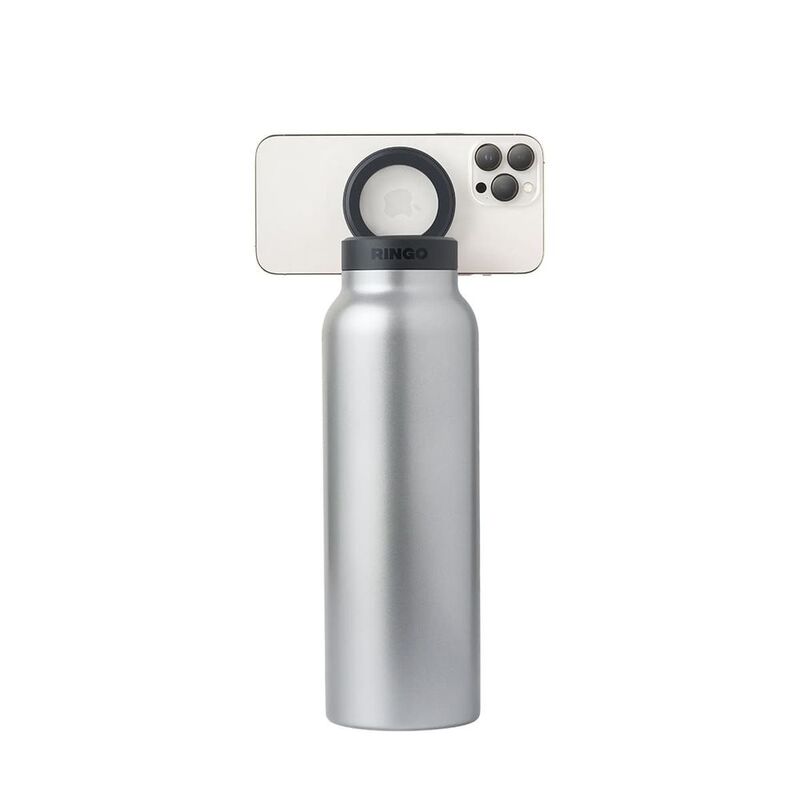 RINGO insulated water bottle is the hydration bottle for modern lifestyle that magnetically holds your phone. Taking advantage of MagSafe technology, RINGO cleverly transformed the bottle lid holder into a magnetic mount. With a 90-degree hinge and adjustable positioning for both portrait and landscape use, with or without water, Ringo™ ensures that your device is always at the perfect angle for that selfie, zoom call, or timer'ed group photo. Plus, the package comes with Magnetic Booster Ring that makes Ringo™ compatible with any device - including older iPhones, non-Apple phones, and even tablets like the iPad 12.9"! And of course, RINGO is designed with quality in mind over everything else - PRO Stainless Steel, BPA-Free, Leak-Proof, Toxin-free, holds temperature 24Hrs Cold and 12Hrs Hot, Dishwasher Safe, you name it, Ringo's got it.