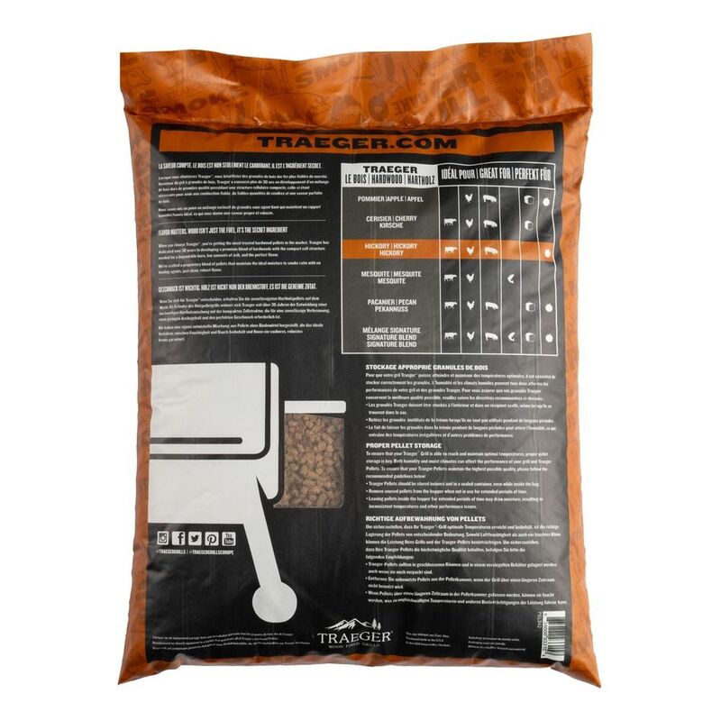 Traeger Hickory pellets are great for naturally enhancing Beef, Chicken, Pork, and Veggies with full-bodied, bold flavor. No wonder it is staple in BBQ. Experts agree, hardwood is the secret ingredient for robust flavor. Consistent smoke delivery is determined by the quality of your fuel. We’ve spent years perfecting a premium, balanced blend of hardwoods for trusted performance and flavor. *Packaging may vary.