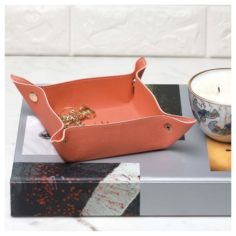A thoughtful favor or sweet gift, this catchall tray is perfect for holding trinkets, change or jewelry. Expertly crafted from vegan leather, it's decorated with the word "Mashallah", meaning "God Willing", in gold calligraphy. The perfect addition to your desk or bedside table, it keeps your daily essentials neatly in place.