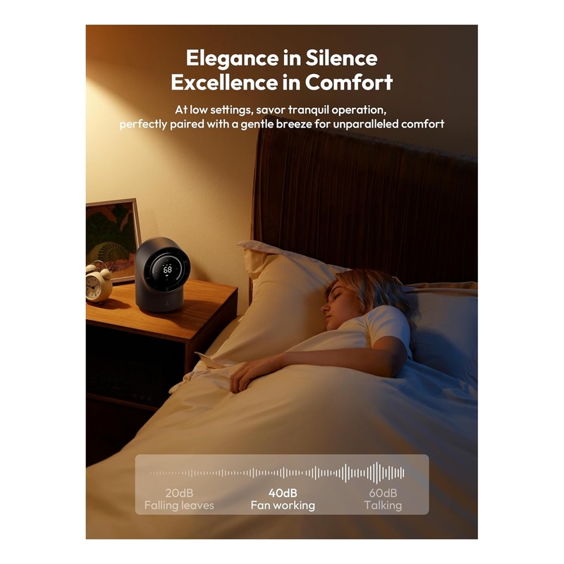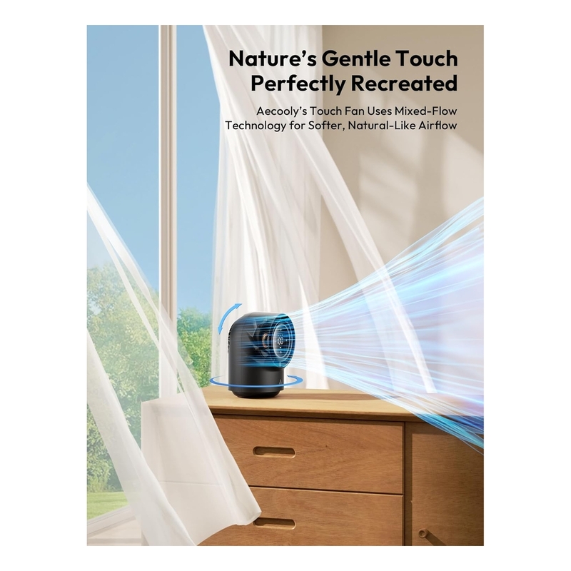 • Aecooly Desk Fan featuring an intuitive LED touch display, this fan allows for effortless control and seamless adjustments, giving you a modern and user-friendly experience at your fingertips.