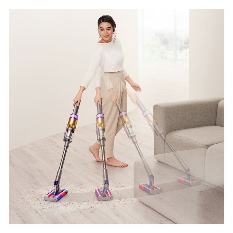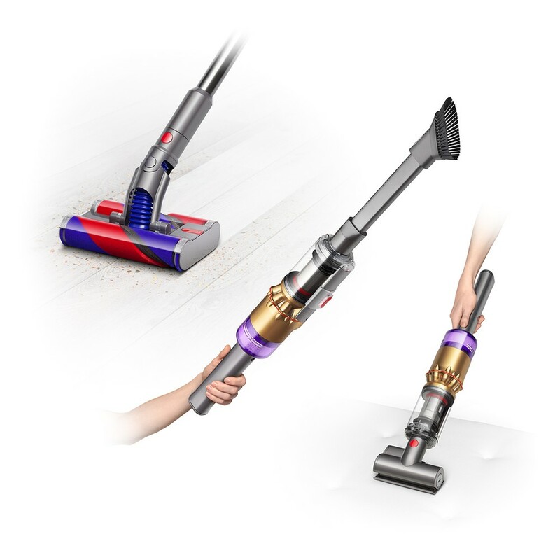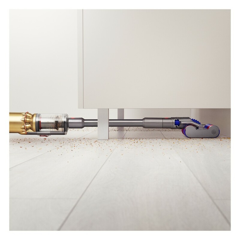 Dyson technology, concentrated and rearranged in-line, allowing it to lie flat and clean into tight spaces. - Transforms to a handheld in one click