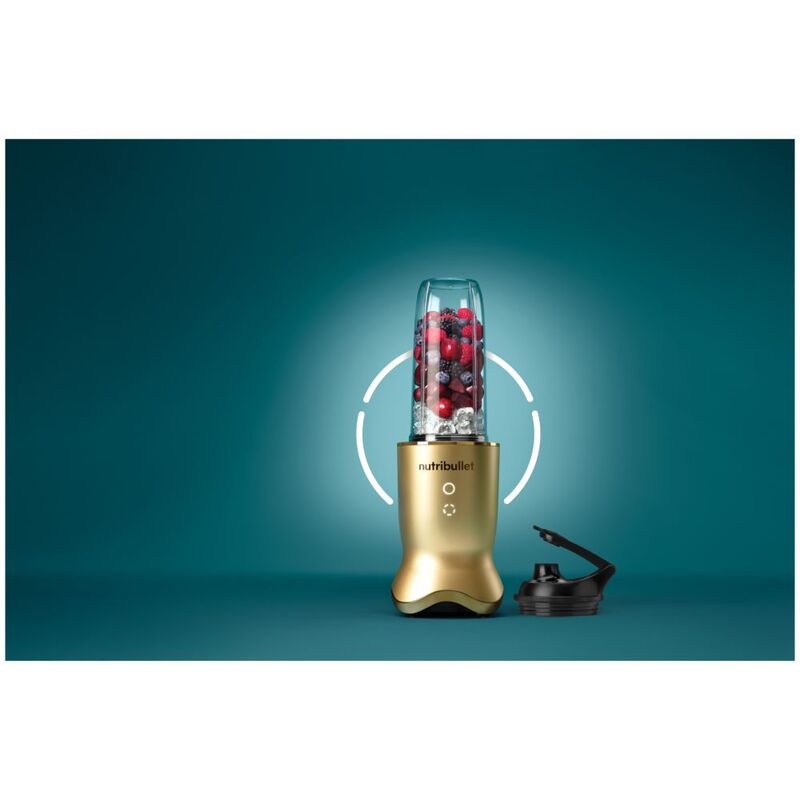 • Glow interface. Automated blending cycle and pulse function buttons illuminate as soon as the cup is attached for simple, controlled extraction.