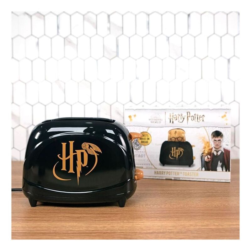 Pop up to a colorful breakfast with Uncanny Brand’s Harry Potter Icon Two-Slice Toaster, featuring Harry Potter's glasses. This lightweight and durable two-slot toaster comes with an adjustable thermostat, reheat, defrost, and quick-stop functions.