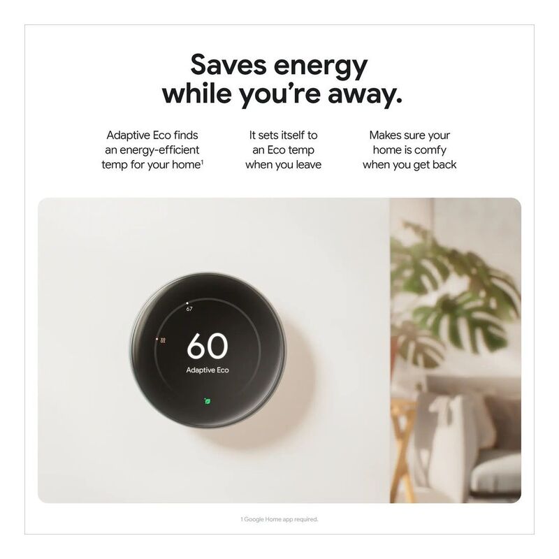 - Saves energy while you’re away. Adaptive Eco helps find an energy-saving temperature, based on the temperature outside.¹ So you save when you’re away, and come back to a comfy home.