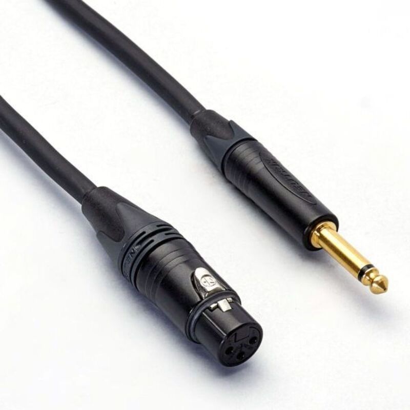 Unbalanced shielded cable Professional series, made with one 6,3 mm. mono Neutrik (R) jack and one Neutrik (R) cannon female. Gold-plated connectors. Length 6 m.