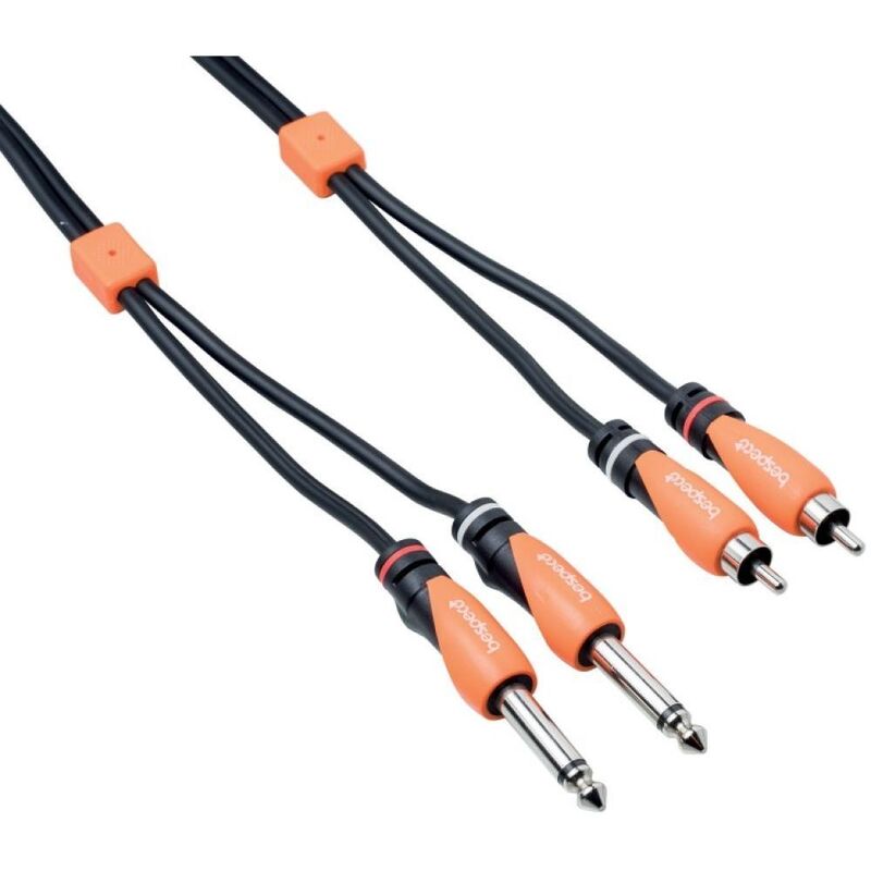 Connecting cable with profiled mono jacks 6.3 mm, two RCA profiled connectors. This cable from the Bespeco Silos series has a 98% oxygen-free copper (OFC) conductor and an internal semi-conductive PVC sheath, thanks to which it produces no noise. Spiral shielding on more than 92 percent of the conductor or cast plastic connectors also contributes to the sound quality. Of course, there is a durable and flexible cladding made of PVC and vulcanized silicone. The cables from this series are suitable for a wide range of applications and will surprise you with their excellent quality and very pleasant price.