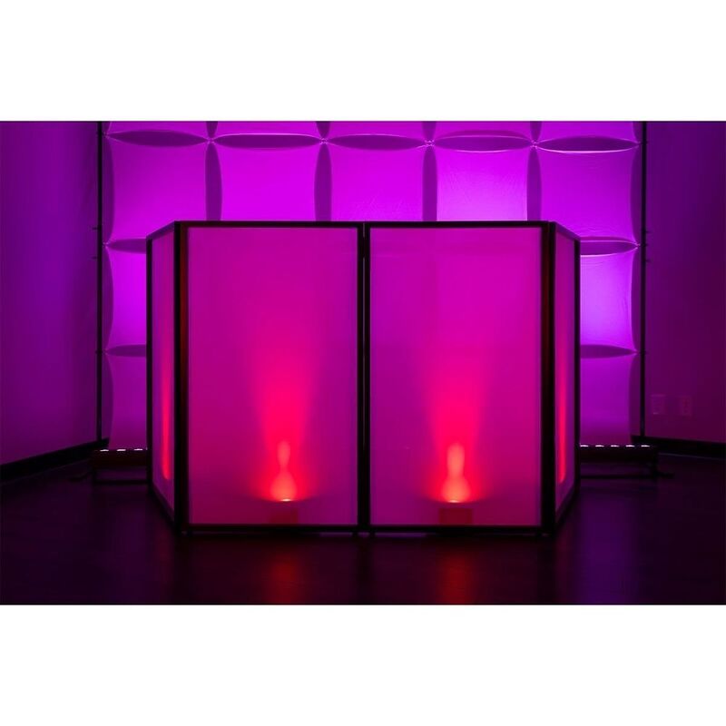 The Headliner Santa Monica Portable DJ Facade helps you create a discreet and professional look for your DJ setup. A lightweight, practical solution for weddings and corporate events that mobile DJ’s and clients alike will love.