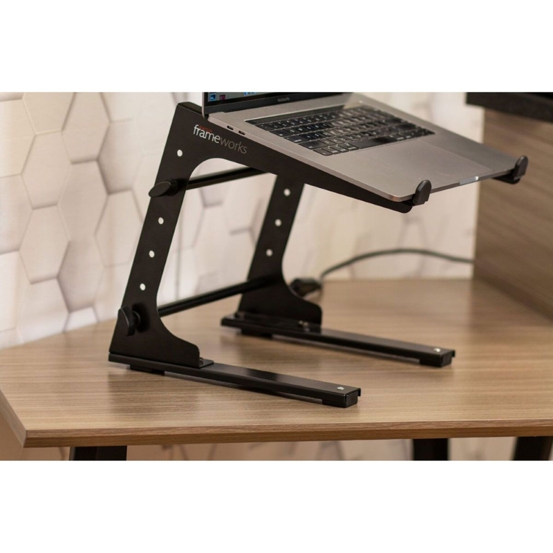 • Desktop-style stand for laptops, DJ controllers, control surfaces, and more