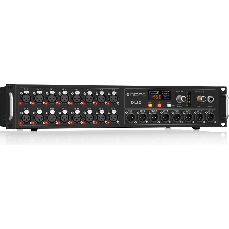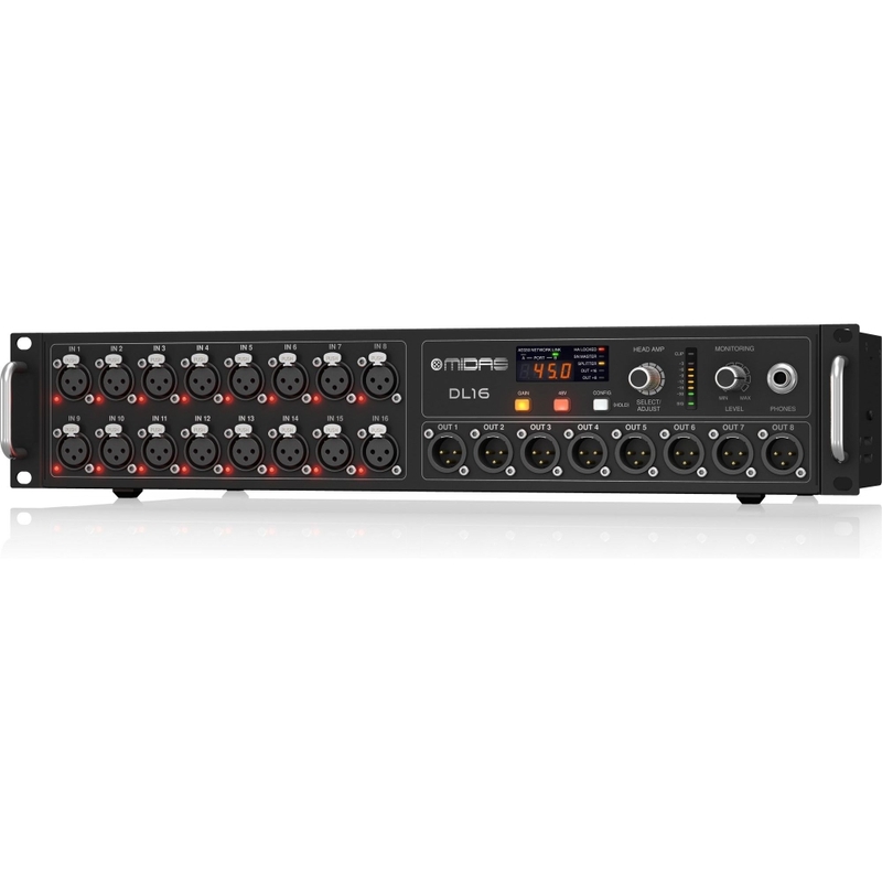 • 16 award-winning Midas PRO microphone preamplifiers with switchable 48 V phantom power