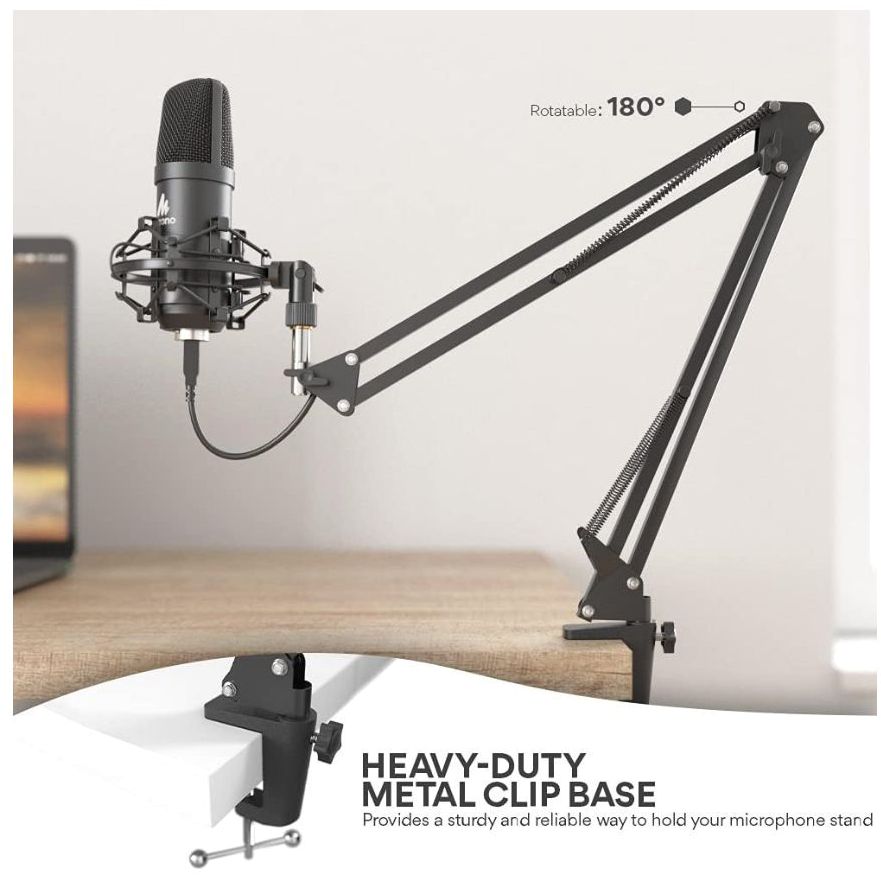 The AU-A04 comes with a robust boom arm set that includes a pop filter and a foam windscreen. This setup helps to reduce plosive sounds and wind noise, ensuring that your recordings are crystal clear. The shock mount and fully adjustable boom arm allow for flexible positioning and stability, making it an excellent choice for studio recording, broadcasting, and live streaming.