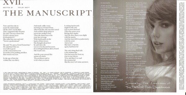 - The Manuscript (Written-By – Taylor Swift) 3:44