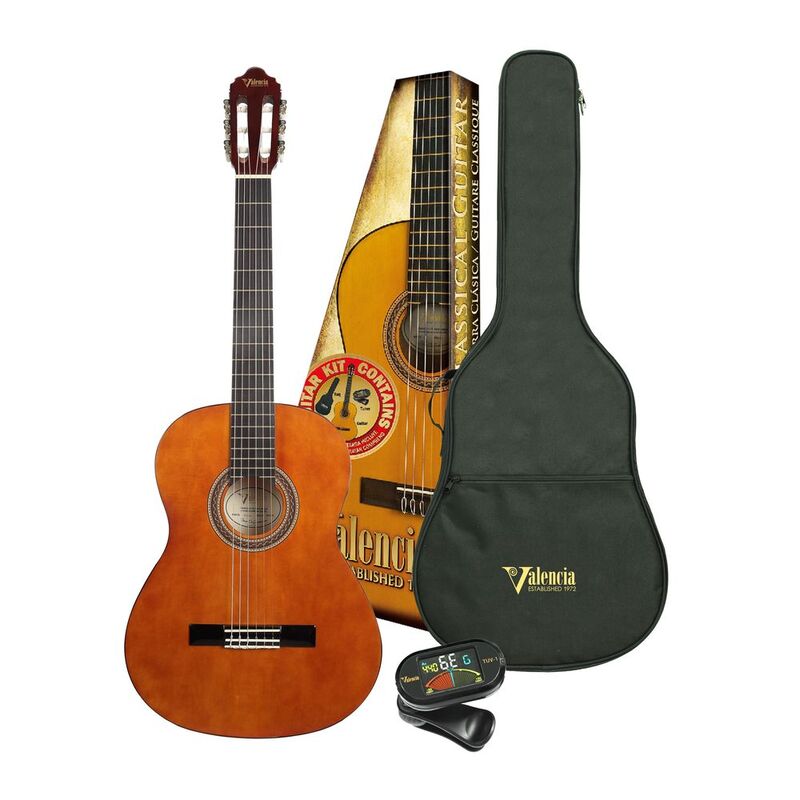 Within this series a packaged GUITAR KIT is also available featuring a natural and black gloss finish guitar in all fractional sizes, a Valencia branded nylon carry bag and an electronic guitar tuner.