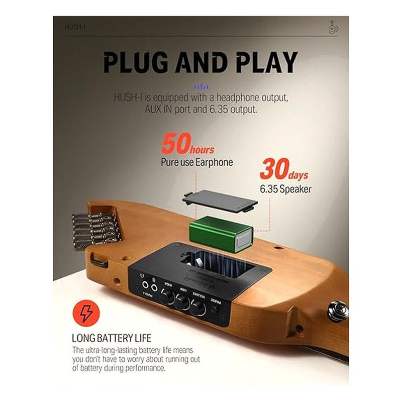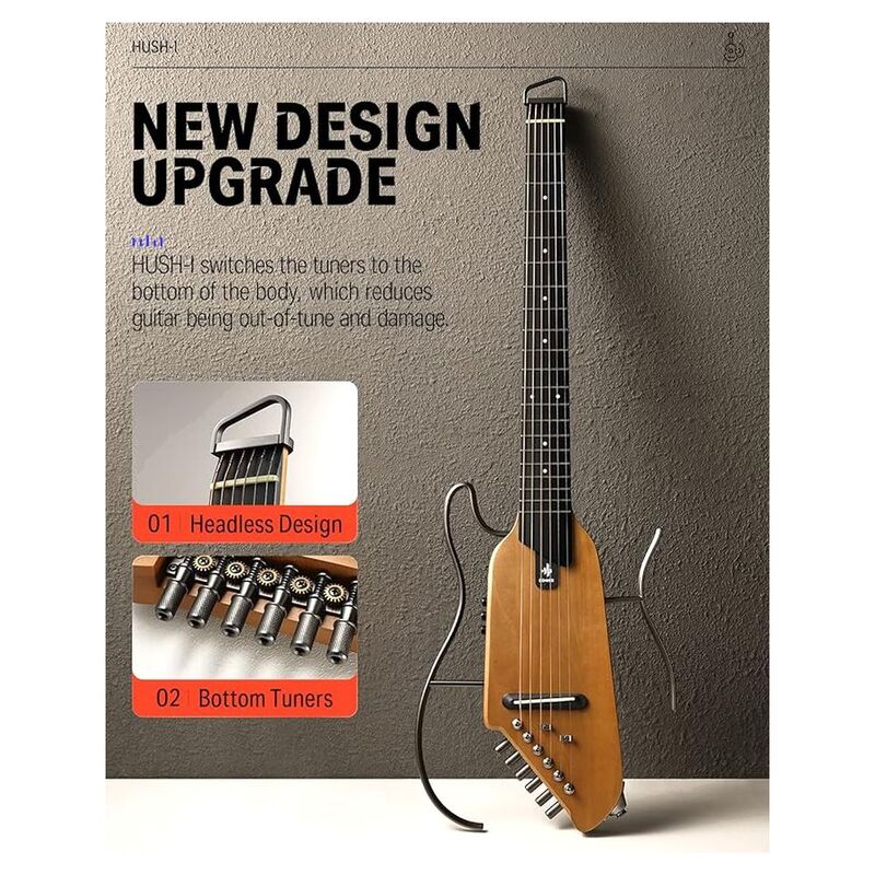The Donner HUSH-I breaks the conventions with the headless concise frame design which delivers the ultimate compaction for travel and multiple playing scenarios. The overall design and the selection of fingerboard and frame material also save extra usage of wood making the Donner HUSH-I one of the most environmentally friendly wooden guitars.