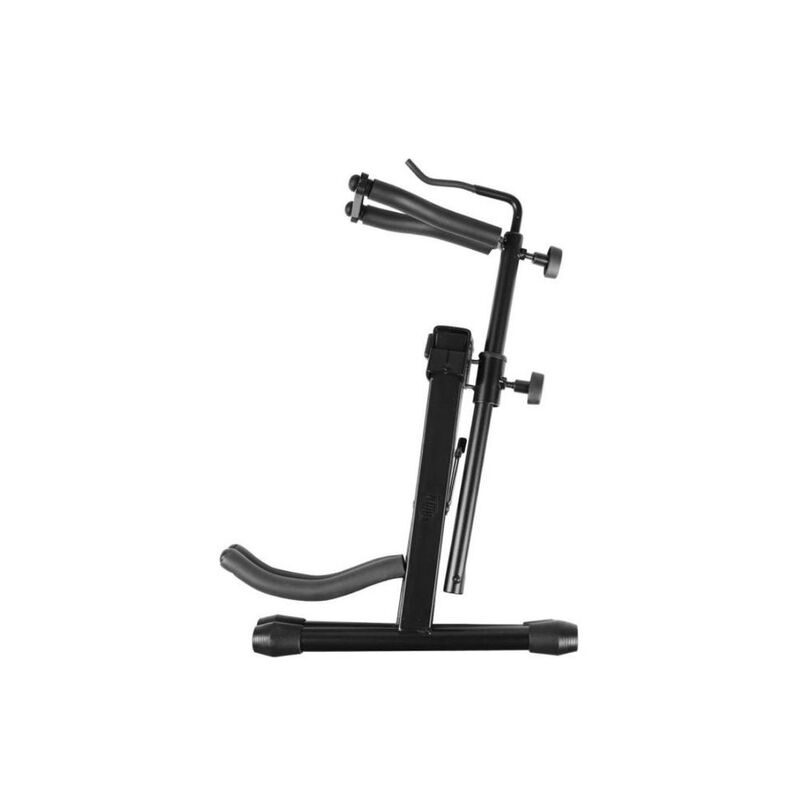 Violin stand with bow holder. Solid construction with foam covered support arms to protect your violin.