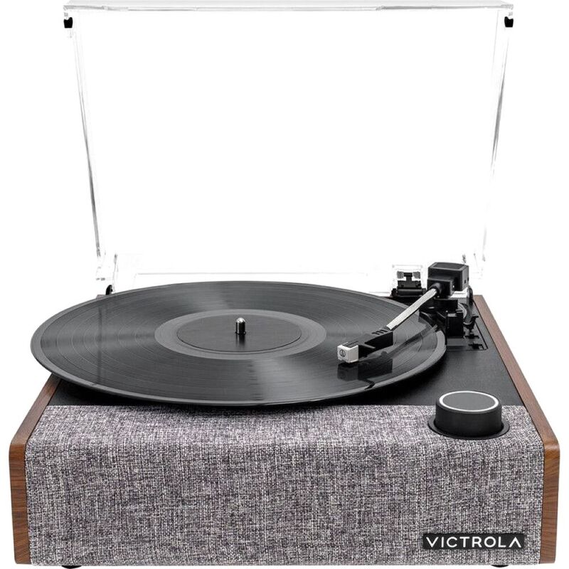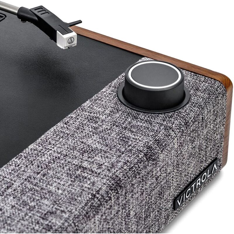 Upgraded Hardware, Upgraded Experience The Victrola Eastwood II Record Player builds upon the rich heritage of its predecessor, offering a premium dual-hybrid turntable experience. Its redesigned aesthetics and simplified interface seamlessly blend nostalgia with modern convenience. Equipped with built-in speakers and innovative Vinyl Stream technology, this turntable allows you to wirelessly stream your favorite records to any Bluetooth-enabled speaker, enhancing the versatility of your listening experience. Designed to deliver exceptional sound quality, the custom-tuned speakers of the Eastwood II ensure that every note and melody is reproduced with unparalleled clarity and richness. Whether you're exploring classic vinyls or indulging in the latest albums, this turntable consistently produces top-notch sound, captivating both beginners and vintage enthusiasts alike. Setting it up is effortless, requiring no stereo system or additional equipment, making it an ideal choice for those seeking a hassle-free introduction to vinyl playback. Its intuitive controls, including a single illuminated knob for playback management, along with Line/RCA outputs for connection to home theater systems and a 3.5mm Headphone/Aux Jack for private listening, provide users with convenient access to all essential functions. Crafted with meticulous attention to detail, from the real wood case to the high-quality fabric grilles, this turntable exemplifies Victrola's more than 115 years of dedication to craftsmanship, ensuring a timeless blend of style and performance