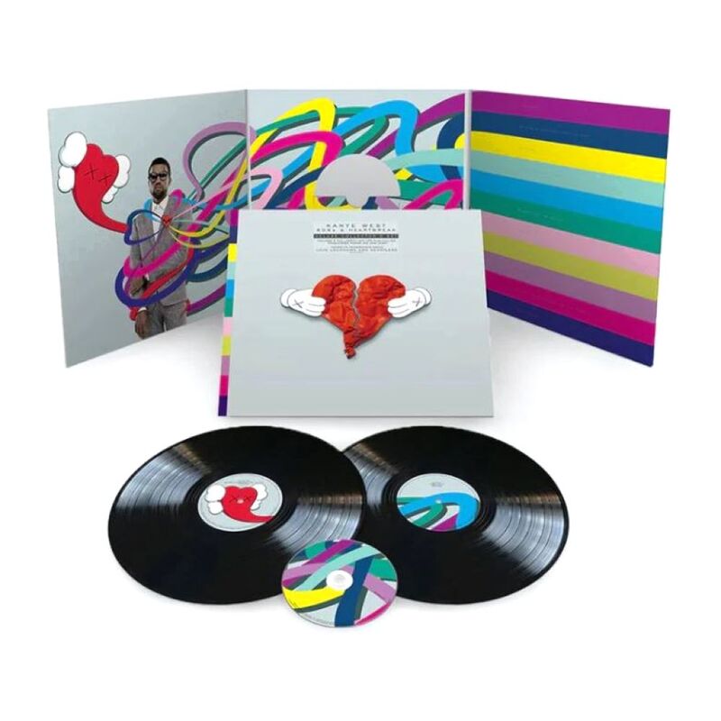 Includes 2 full length vinyl LPs plus full CD, double-sided poster and lyric sheet. The ten time Grammy Award winning musical phenomenon, rapper, producer and singer embarks on a new musical journey taking his audience to new heights. Kanye West returns with his fourth album 808s & Heartbreak. His highly anticipated 2008 album features the heart pounding first single, 'Love Lockdown' which premiered live for the first time on the 2008 MTV Video Music Awards.