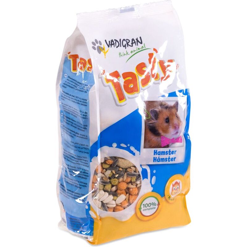 Your Sweet Hamster Will Do a Happy Dance when you pour this complete animal feed for hamsters into their dinner bowl A Nutritious Addition to their Diet, it’s Thoroughly Tested, 100% Complete, and 100% Delicious The Tasty brand is the Nr. 1 Hamster Food Mix for a long, healthy, and happy small animal life, it helps your little friend Feel Healthy and Stay Active High in Nutrients, this premium and complete meal will help keep their Small Bodies in Top Condition, so they can Play the Day Away A bowlful of Pure Wellness, Your Hamster Pal will love to nibble on this wonderfully yummy and delicious food This essential hamster food contains important ingredients that your small animal needs to stay healthy, active, and happy. It keeps their digestive system working in top form. It smells wonderful and tastes great.