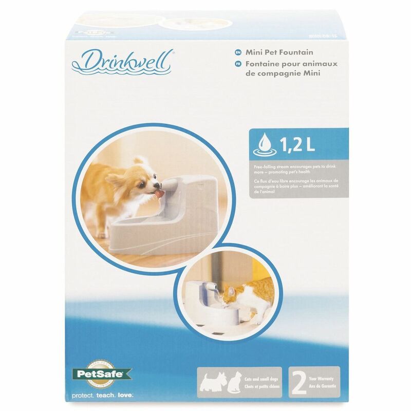 The Drinkwell Mini is the perfect fountain for small or medium dogs and cats. The Mini Fountain spouts 40 ounces of fresh, filtered water, giving your pet the option to drink from the flowing stream of water or the shallow bowl.