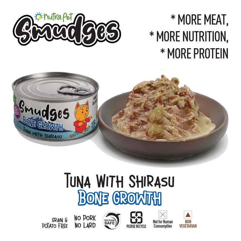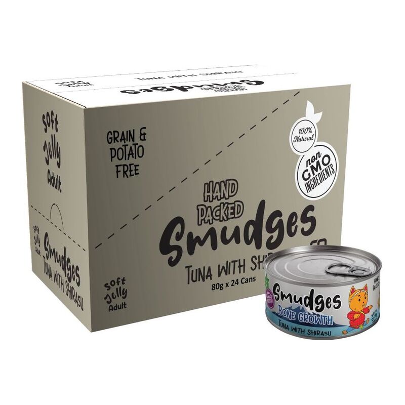 Smudges Adult Cat food for better Bone Growth - Tuna Flakes with Shirasu in Soft Jelly - 80g Can