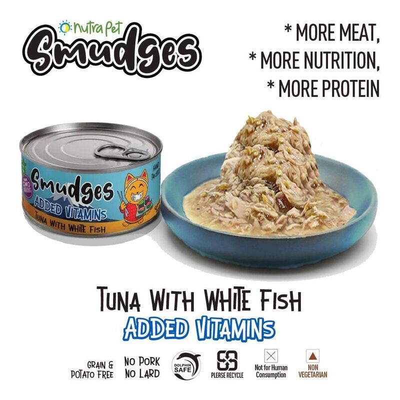 Smudges Adult Cat food High in Vitamins - Tuna with white fish - 80g Can