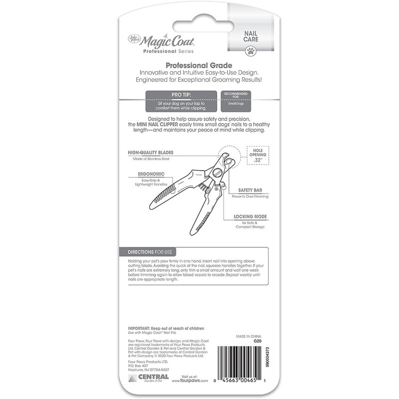 SIZE - Mini pet nail clippers with .34 inch hole opening are ideal for small dogs