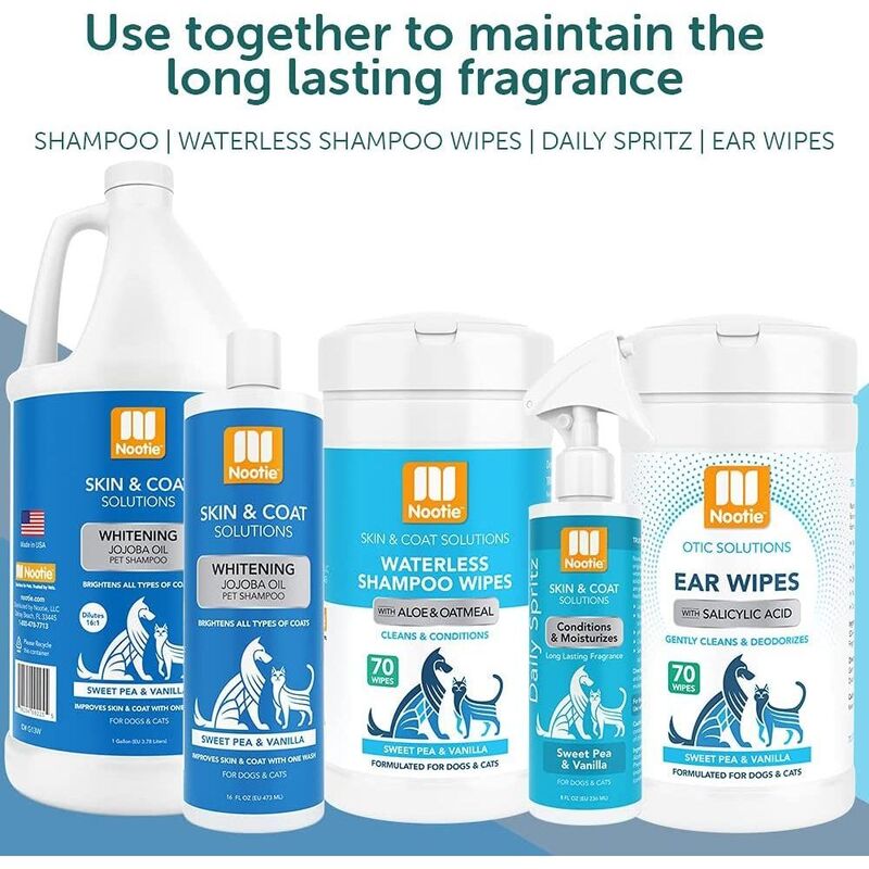 Whitening & Brightens - This whitening and color enhancing shampoo with the refreshing fragrance of Sweet Pea & Vanilla leaves your pet glowing without drying or irrating the skin. It removes difficult stains and oil without using bleach or harsh chemicals.- Long lasting fragrance- Made with natural ingredients- Soap & paraben free- No harsh chemicals- Safe to use along with topical flea & tick products1 Gallon