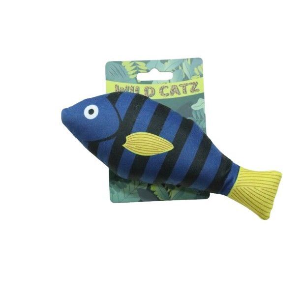 The Wild Catz Mrs. Bluey Plush Cat Toy measures 20 x 8 cm and weighs 20 grams. This soft, plush toy is designed for batting, pouncing, and cuddling, providing a fun and engaging playtime experience for your cat. It features a catnip filling that can captivate your cat's attention, encouraging play, scratching, chewing, and carrying. The toy is lightweight and has a charming fish design, which appeals to cats and helps reduce their boredom. By stimulating your cat's natural instincts, this toy promotes physical activity and keeps your kitten healthy and active. Its playful and cartoonish appearance adds to its appeal, making it a delightful addition to your cat's toy collection.