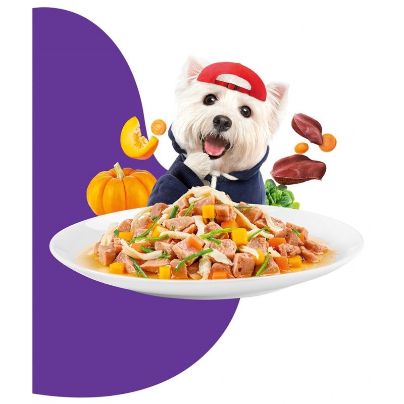 Chicken, Chicken Breast, Beef Liver, Potato Modified Starch, Amino Acid, Chicken Liver, Carrot, Pumpkin, Spinach, Sunflower Oil, Minerals, Thickening Agents, Vitamins, Prebiotic, Caramel.