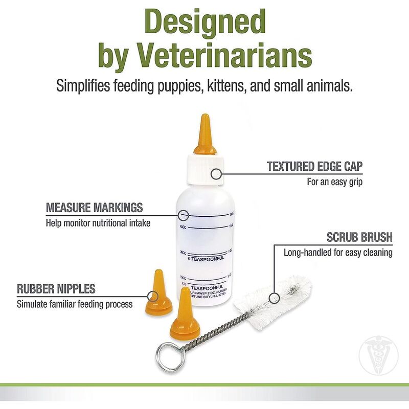 Four Paws Pet Nurser Has Been Scientifically Designed By Veterinarians And Professional Breeders For All Pet Feeding: Puppies, Kittens, Hamsters, Gerbils, Monkeys And Many Other Pets. Pet Nurser Kit, 2 Oz Bottle W Brush
